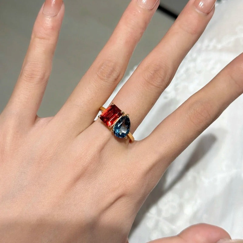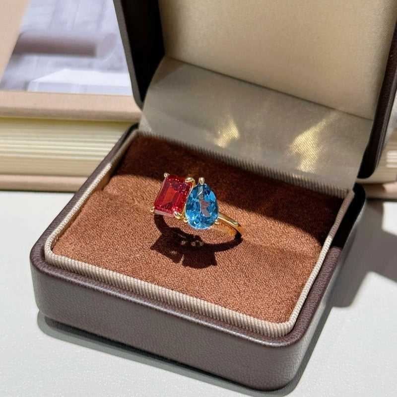 Crafted in warm Gold-plated Sterling Silver (S925), this piece is the ultimate choice for the modern, artistic romantic who embraces bold design. Its powerful color combination and deeply symbolic meaning make it an extraordinary everyday statement piece, a distinctive alternative engagement ring, or an unforgettable anniversary treasure.