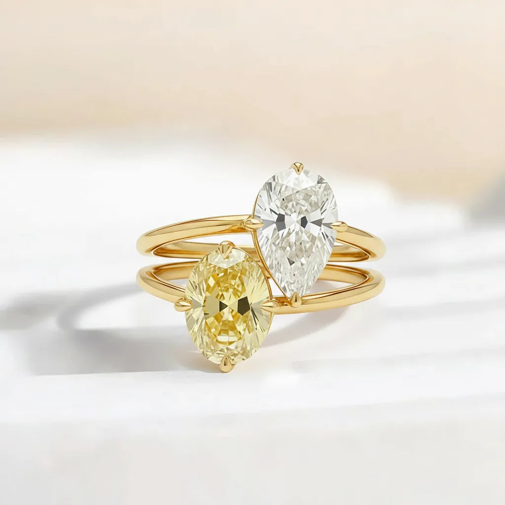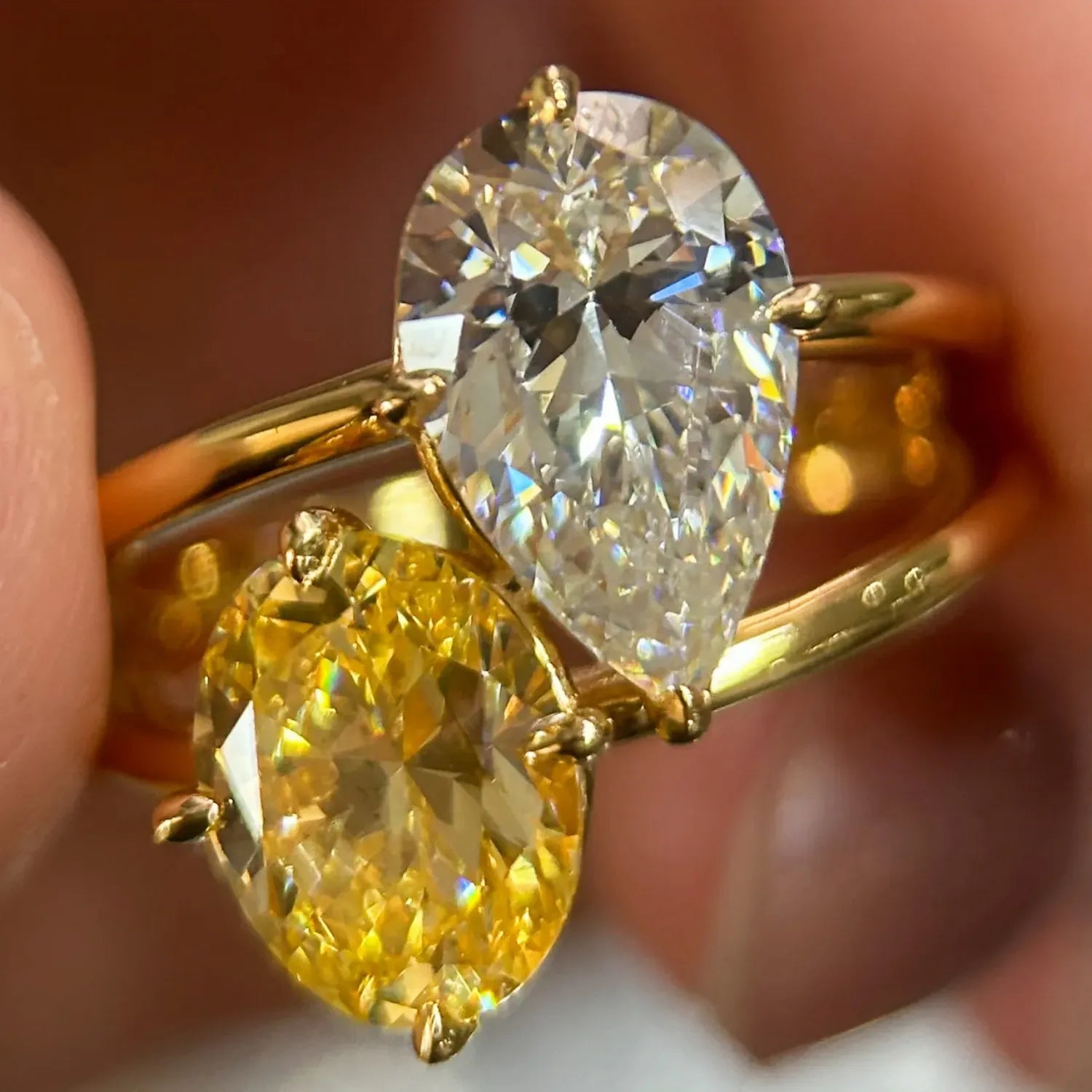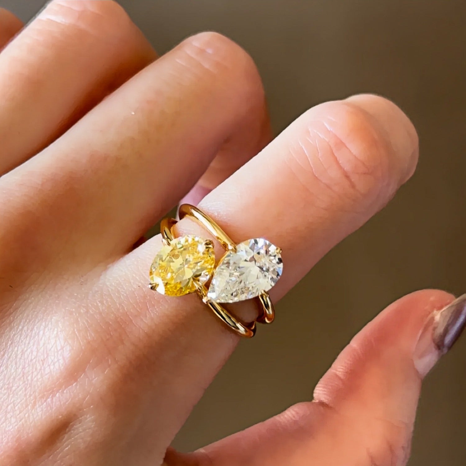 6.5Ct Yellow Oval & White Pear Toi et Moi Ring