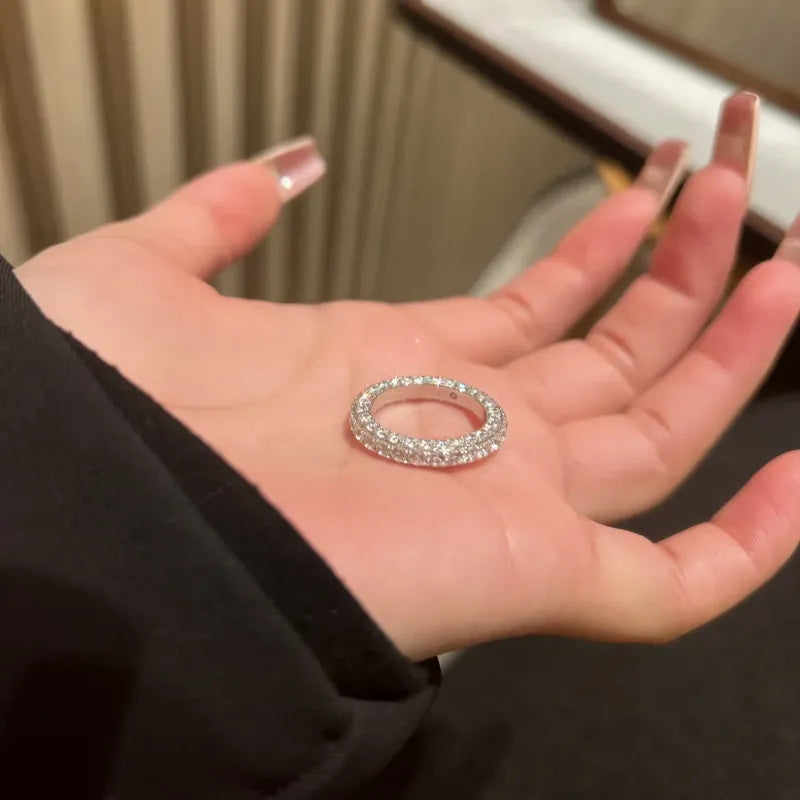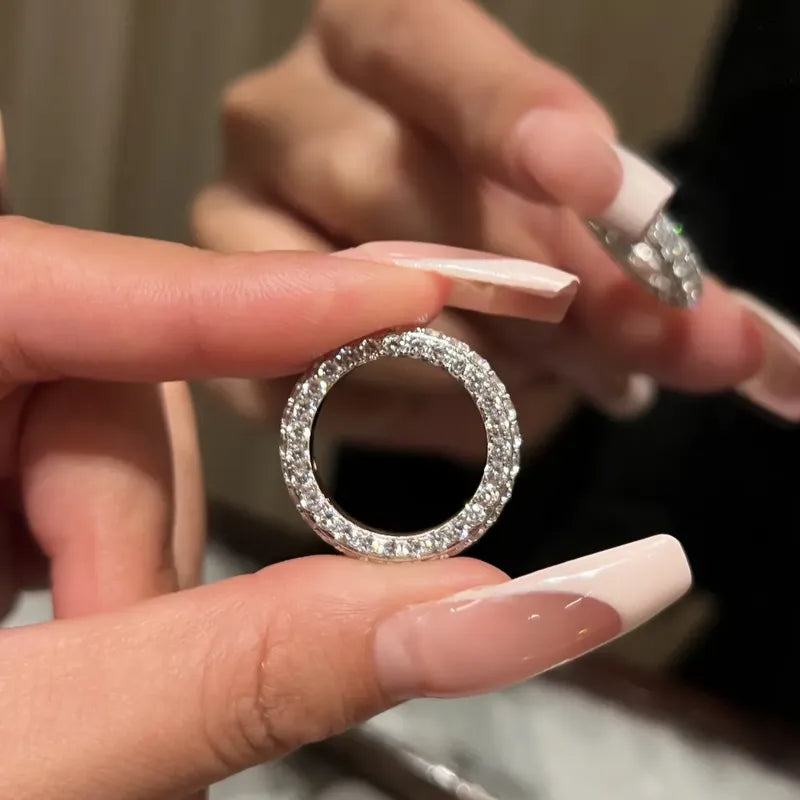 Versatile Chic, Heirloom Quality: Crafted in luminous Platinum-plated Sterling Silver (S925), this ring is the perfect complement to any engagement ring, serving as a stunning wedding or anniversary band. Its classic brilliance and unique architectural detail also allow it to stand alone beautifully as an everyday statement piece or a sophisticated stacking ring.