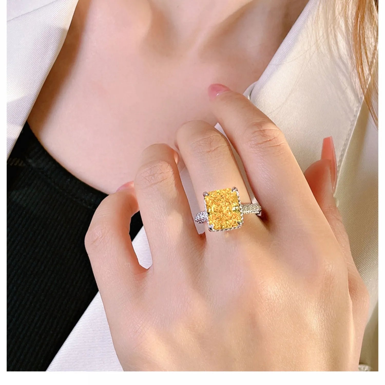 Why blend in when you were born to stand out? This ring is a declaration of confidence. Featuring a spectacular, intense yellow centerpiece that commands the room, it is framed by intricate, icy pave detailing that catches light from every angle. Bold, brilliant, and unapologetically glamorous—just like the woman who wears it. Own your moment.