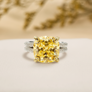 13.1Ct Yellow Cushion Cut Engagement Ring For Her
